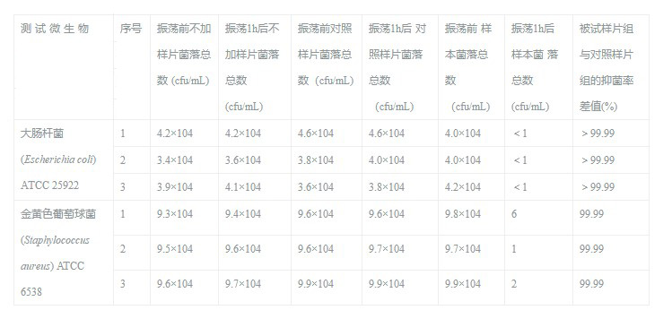 振蕩1h后不加樣片菌落總數 (cfu/mL) |